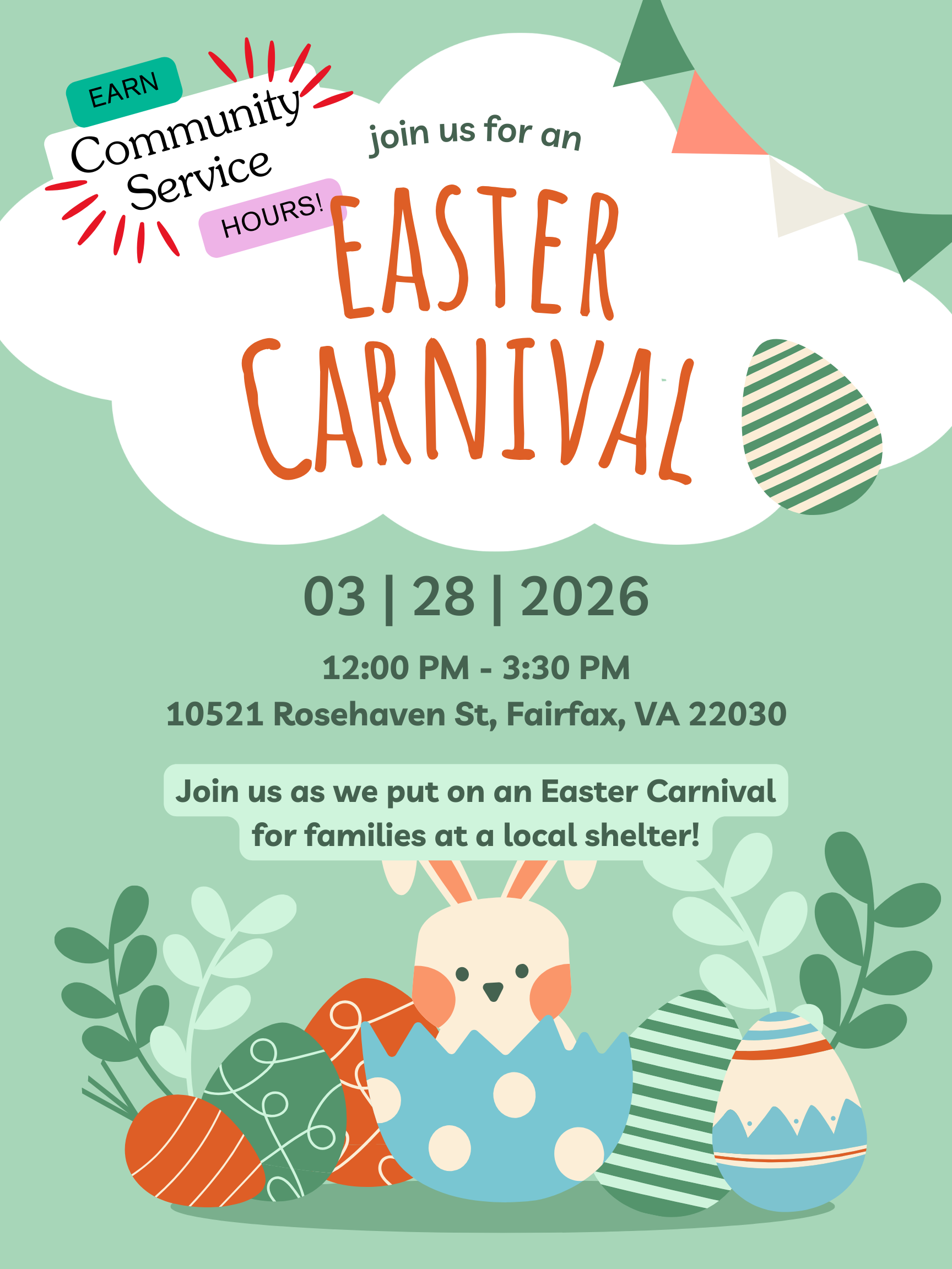 Join us to help put on an Easter Carnival at a local family shelter for kids!